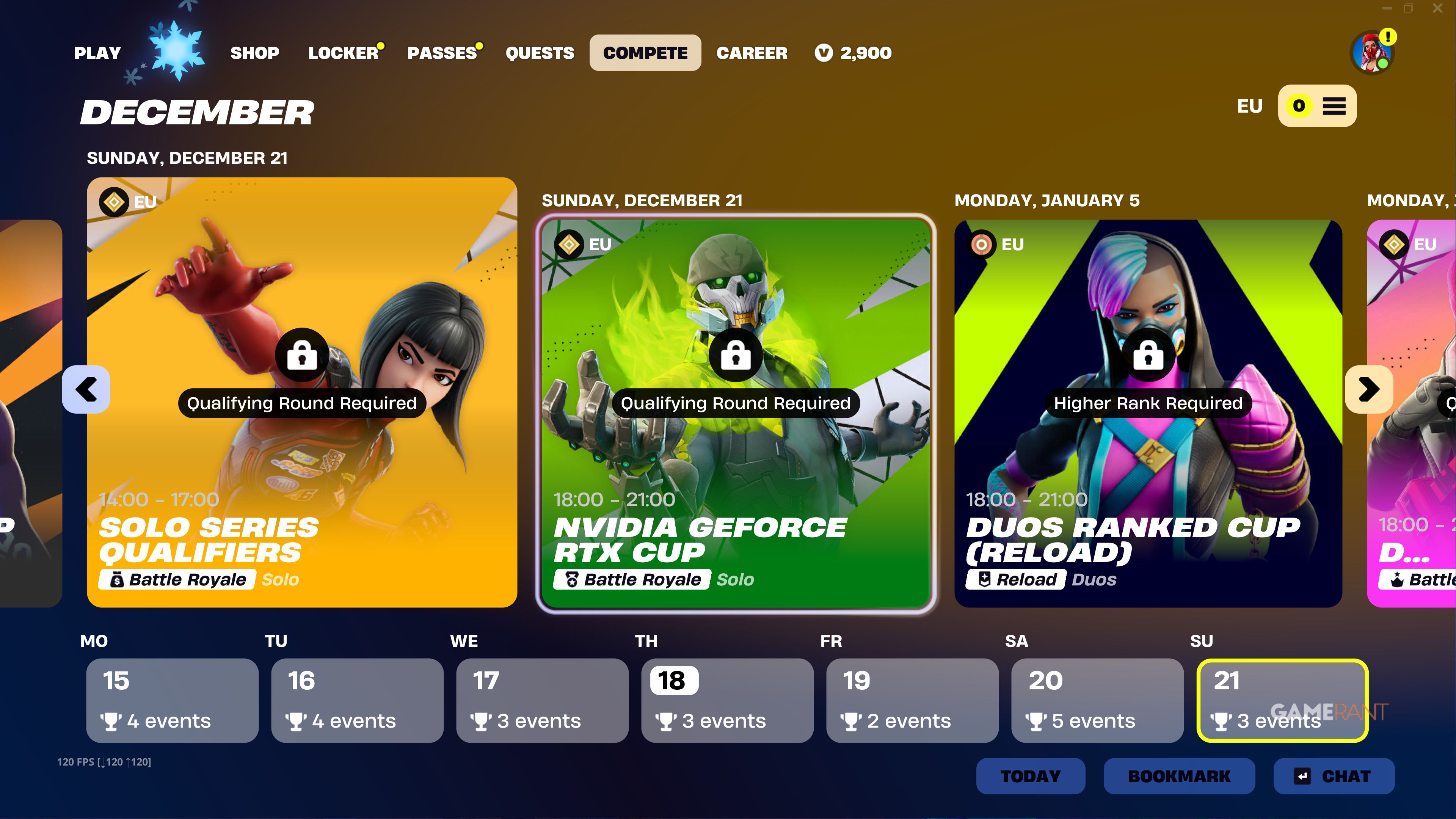 Итак, NVIDIA GeForce RTX Cup стартует в воскресенье, 21 декабря 2025 года! Это сольное соревнование, и, к счастью, оно не займет весь день – оно длится всего несколько часов, с учетом времени начала, адаптированным к вашему местоположению. Если я хочу принять участие, мне нужно быть как минимум Золотым рангом в Battle Royale, Zero Build или Reload Ranked, и я должен был сыграть как минимум в 14 турнирах за последние шесть месяцев. Звучит как весёлый вызов!