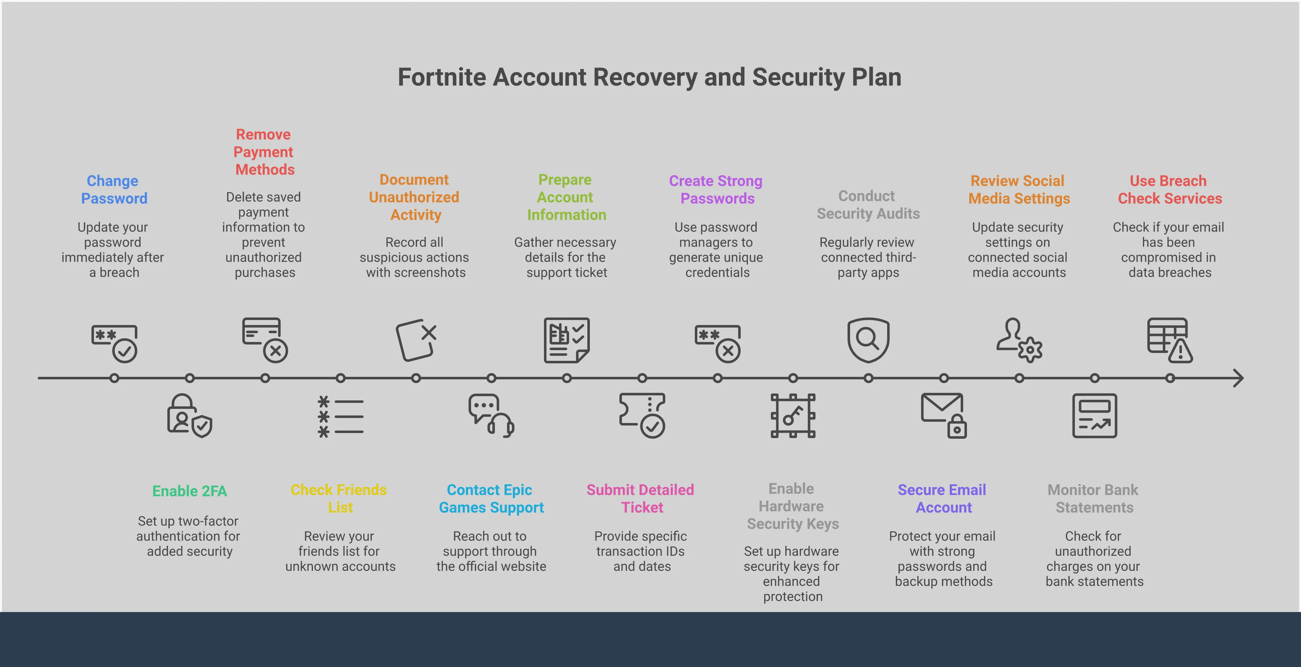 Если хакер потратил V-Bucks или купил предметы на вашем аккаунте, есть хорошие новости: многим игрокам удалось вернуть свои цифровые предметы. Самое главное — немедленно сообщить о проблеме. Команда поддержки Epic обычно может отменить несанкционированные покупки и вернуть V-Bucks на ваш аккаунт. Один игрок даже получил всё восстановленное в течение часа после сообщения о взломе! Хотя результаты могут отличаться, быстрое реагирование значительно повышает ваши шансы на успешное восстановление.