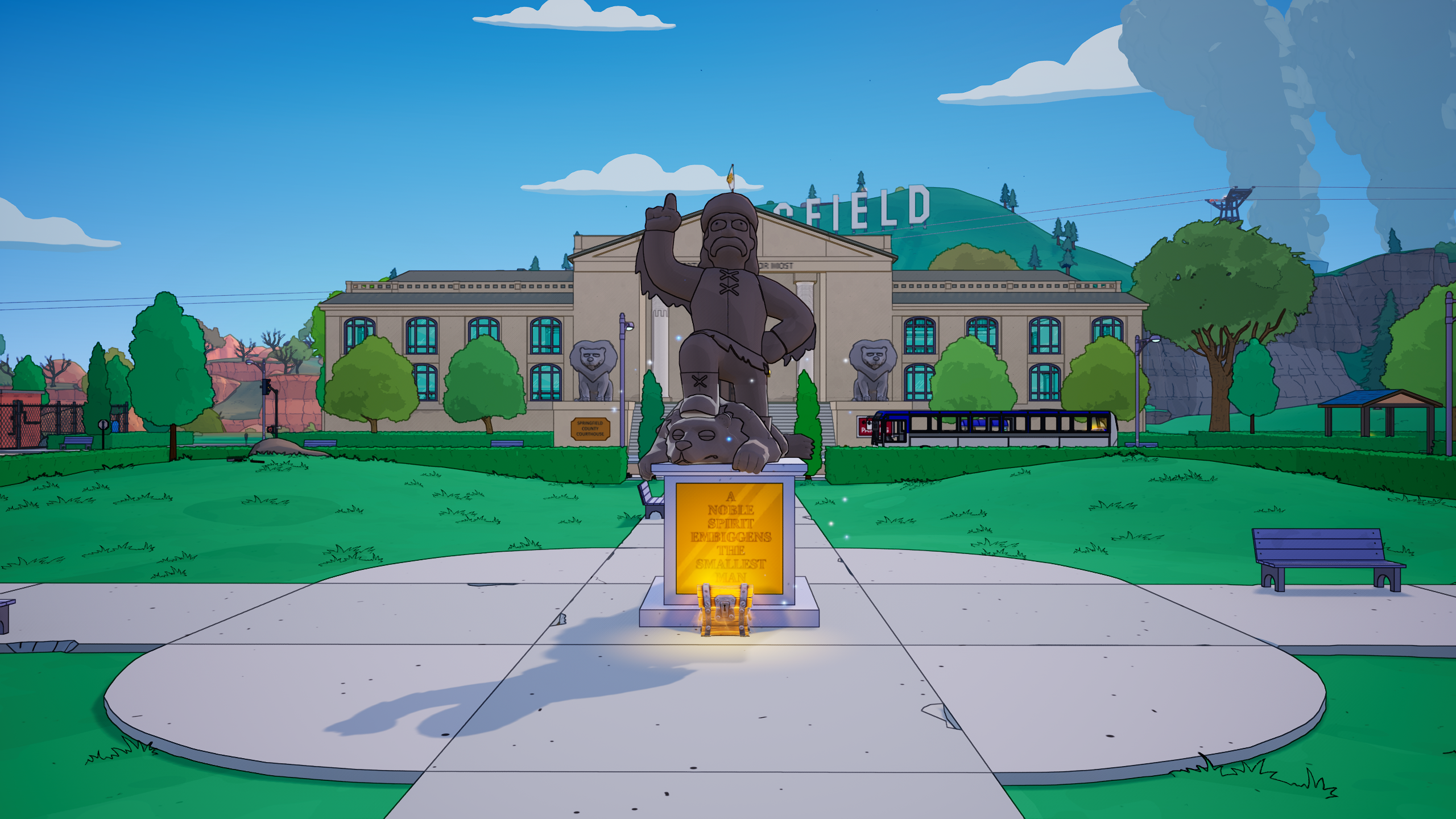 Сбить голову статуи Джебедии Спрингфилда (0/1) Выстрелите в статую головы Джебедии Спрингфилда в центре городской площади Спрингфилда.