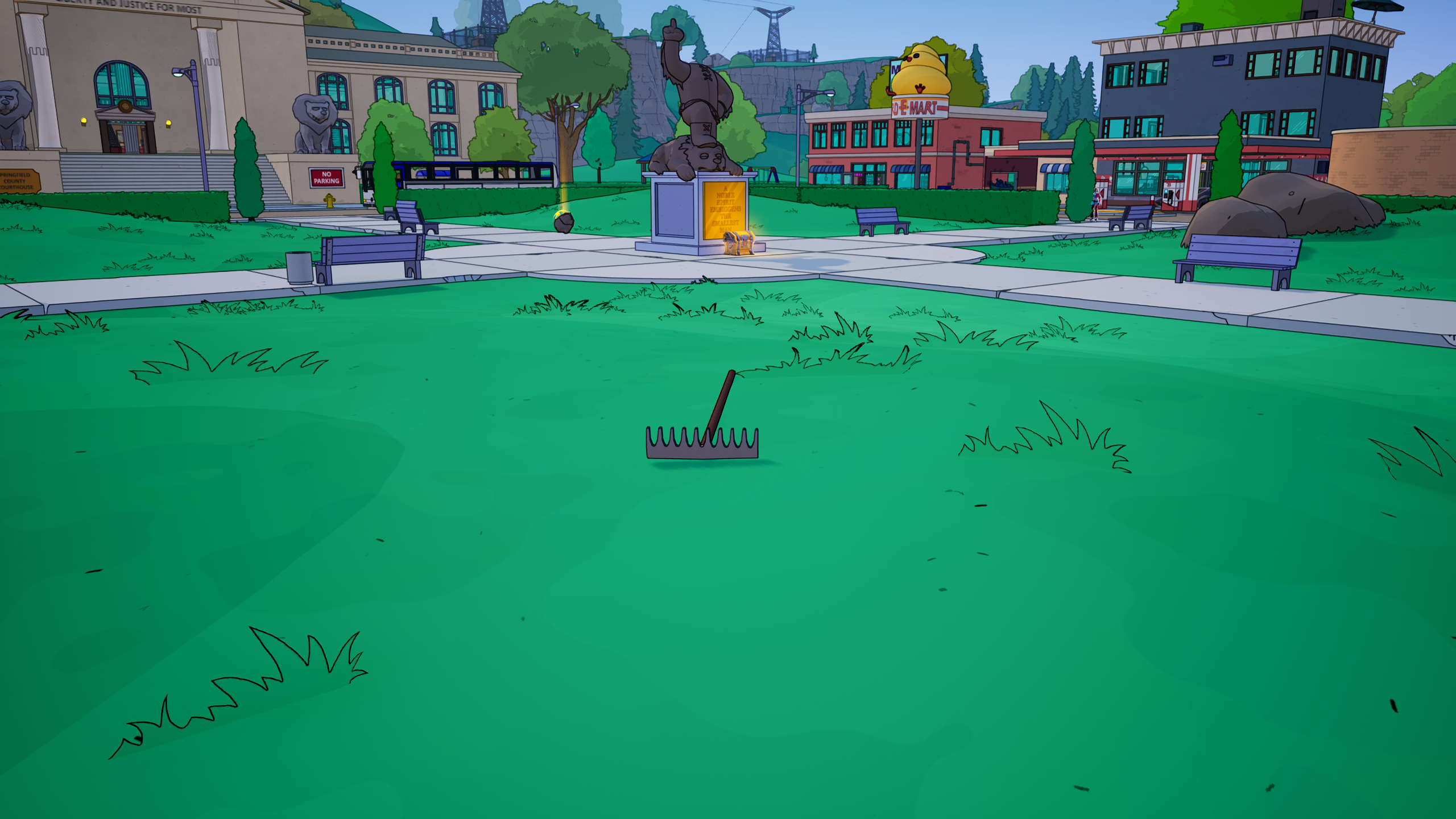 Наступи на грабли (0/1) Разбросанные по травяным участкам площади Спрингфилд находятся куча граблей на земле, по которым можно наступить.
